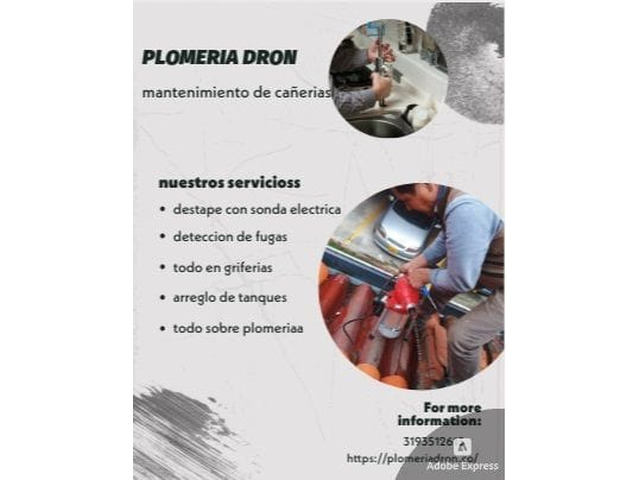 ???????? PLOMERÍA DRON ???????? ????️ Expertos en: ✅ Destape de cañerías ???? ✅ Arreglo de filtraciones ???? ✅ Instalaciones y reparaciones ???????? ???? Servicio rápido en Bogotá y Cundinamarca ???? Contáctanos: 3193512613 ???? ¡Atendemos por WhatsA...